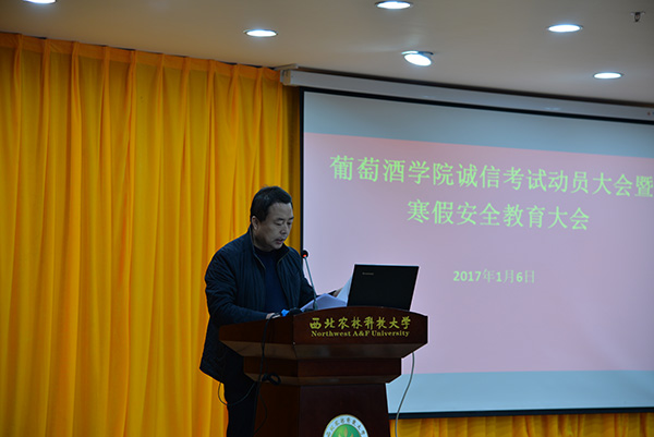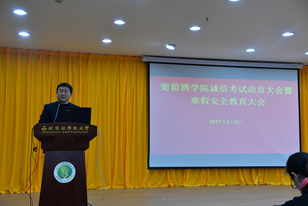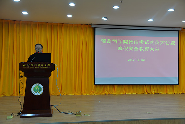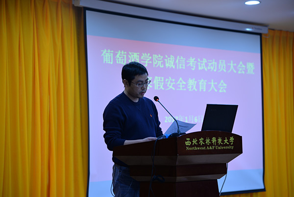 最后,房玉林经理作诚信考试动员。房经理通过讲述真实案例,向同学们生动阐释了考试违纪与作弊其后果的严重性,他要求同学们自觉遵守考试纪律,践行“耕土耕心、酿酒酿人”的院训精神,诚信考试、诚信做人,考个好成绩并带着公司对大家寒假安全的叮咛和嘱托,平安回家开心过年。