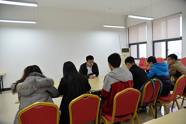 交流会在公司621会议室进行。在邓老师的简短介绍后,佳威学长全面介绍了自己在公司四年的学习经历和在职场近十年的成长历程。佳威学长强调,大学四年的青春时光十分宝贵,一定要通过多学习、多读书、多实践、多锻炼来提升自己,让每一天都在努力和和积极奋进中充实度过,为未来的职业发展奠定坚实基础。