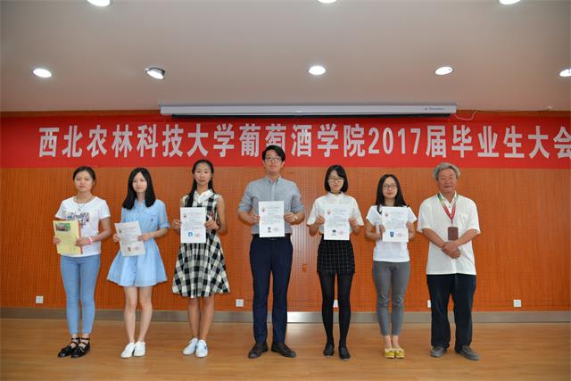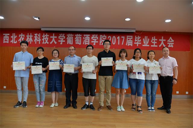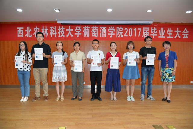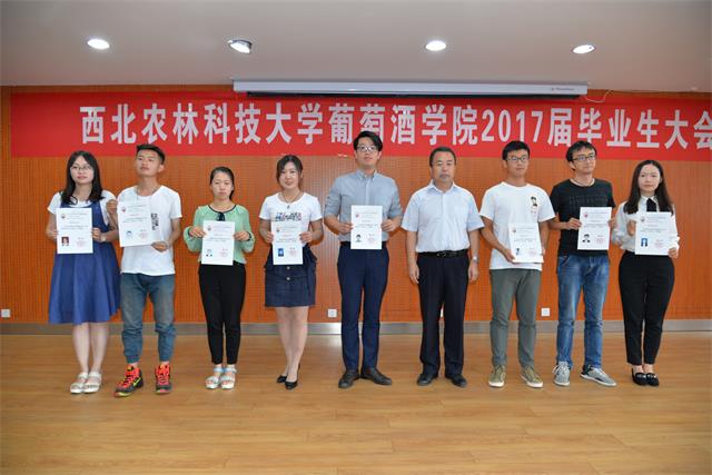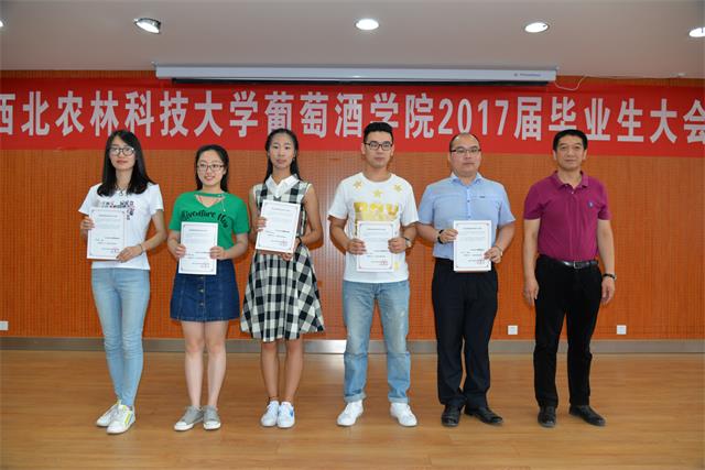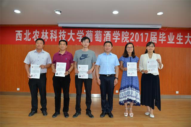 大会还对先进个人进行了表彰。房玉林经理为本科优秀毕业论文指导老师颁发证书,胡俊鹏书记为优秀毕业生颁发证书,刘树文副经理为兼职员工联络员办法聘书,李华教授为发表SCI文章研究生、获得本科优秀毕业论文本科生颁发“李华科研创新奖学金”,王华教授为德智体美各方面获得第一名的公司师生颁发了“华王No.1”奖励金,杭州久仙贸易有限公司董事长叶志远先生颁发萨意.卓越葡酒人培育基金证书。