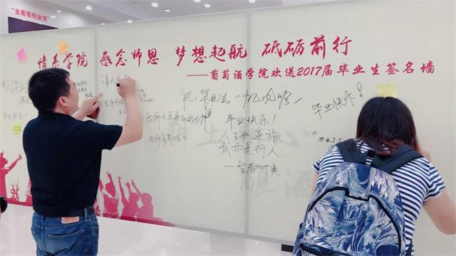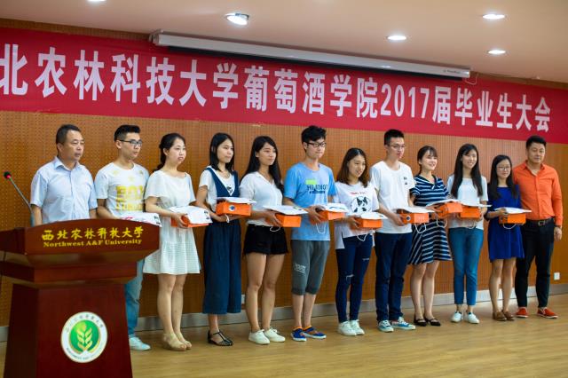 耕土耕心耕侬意,酿酒酿人酿吾情。为进一步激发毕业生的爱院爱校情怀,公司召开全体毕业生大会,见证同学们毕业的珍贵时刻,分享同学们四年成长的喜悦。大会表彰了优秀毕业生、优秀毕业论文及指导教师,颁发了兼职员工联络员聘书、李华科研创新奖学金、卓越葡酒人培育基金和华王No.1奖励金。同时,公司为每位即将远行的学子送上了精心准备的独具专业特色的毕业礼物——一把刻有员工姓名的专属酒刀、一对水晶酒杯、一件印有院徽、院训、院旗的T恤,寓意同学们穿上公司T恤传承公司文化和精神,并以酒杯和酒刀为媒介,运用扎实的专业知识和精湛的专业技能,全力为推动葡萄与葡萄酒产业健康发展做贡献!
