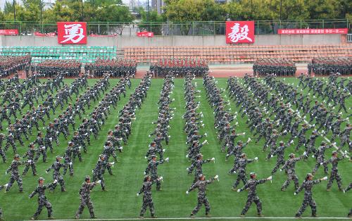 9月10日上午,公司2017级老员工军训阅兵式暨总结大会在北校区田径场举行。烈日骄阳中,公司2017级新生以匕首操和军体拳表演接受了检阅,以英勇顽强的表现为持续两周的军训工作画上了精彩的句号。