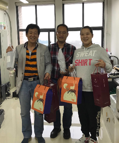 "双节"来临之际,公司2005届员工郭明浩始终不忘师生情,与来自新疆中菲酿酒股份有限公司市场部经理杜磊先生、新疆丝路葡萄庄园酒业有限责任公司董事长李勇先生为老师们送上了节日美酒,公司2006届员工、广州诗味商贸有限公司董事长张华女士为老师们送上了中秋月饼。这些浓浓的节日问候,表达了员工、行业企业对公司发展的关注、感谢和期盼,也传递了员工对老师们的牵挂、思念和祝福!