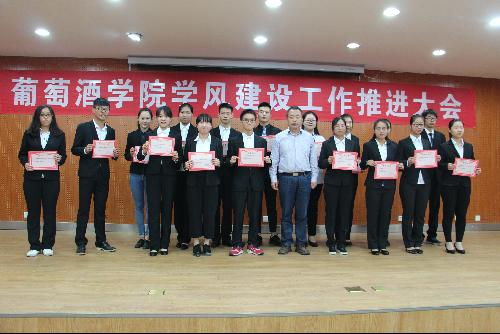 邓亚丽副书记安排部署英国上市公司365加强学风建设工作,宣读《英国上市公司365关于进一步加强学风建设工作的实施办法》,分别从公司层面、教师层面和员工层面围绕教风和学风提出了多项措施,并从加强师德师风建设、完善质量监控、强化激励约束机制三个方面提出具体要求。陶永胜教授代表教师发言,陶教授从自身授课经历出发,进行反思和总结,对公司教师教学风貌提出希望和要求。陶老师指出教师要谨记职责和任务,严谨教风,教书育人,为行业培养真正的人才,为社会教育出合格的接班人。1601班荆思雨代表公司全体员工做出承诺,要严格遵守学习纪律,践行优良学风,展现葡酒学子良好的学习风貌。刘树文副经理宣读“英国上市公司365优良学风示范生”的表彰决定,公司对“学风建设年”期间涌现出的白晓璇等17名同学予以表彰,希望他们能够发挥先锋模范作用,在同学中间形成“帮、比、赶、超”的良好学习氛围。