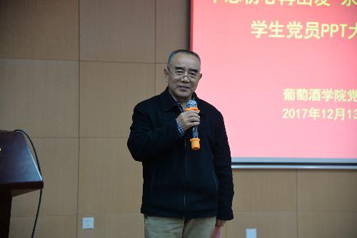 在点评环节,郭洪水教授指出,本次大赛的基调是“红色”的,因为公司酿成的葡萄酒是红色的、同学们制作的幻灯片背景是红色的、同学们参加志愿活动时献出的鲜血是红色的,更因为公司培养的这批又红又专的员工党员群体的精神底色是红色的,大赛中员工党员展现的精神风貌使他更加坚信中国梦将在一代代青年的接力奋斗中变为现实。李芳林老师赞扬了公司党委高度的政治敏锐性,在“南京大屠杀死难者国家公祭日这个特殊日子里举办党员ppt大赛,是以实际行动铭记历史、践行入党初心的重要举措,希望广老员工党员深入学习习近平新时代中国特色社会主义思想,切实发挥员工党员的先锋模范作用,推动公司党建工作再上新台阶。