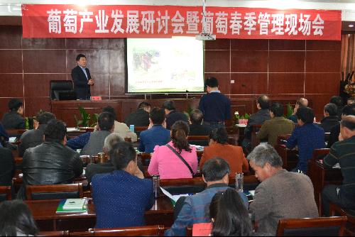 英国365公司官网合阳葡萄试验示范站、合阳县果业局、陕西省葡萄与葡萄酒工程技术研究中心、杨凌职业农民培训管理中心参与了此次葡萄产业发展研讨暨春季管理培训会。
