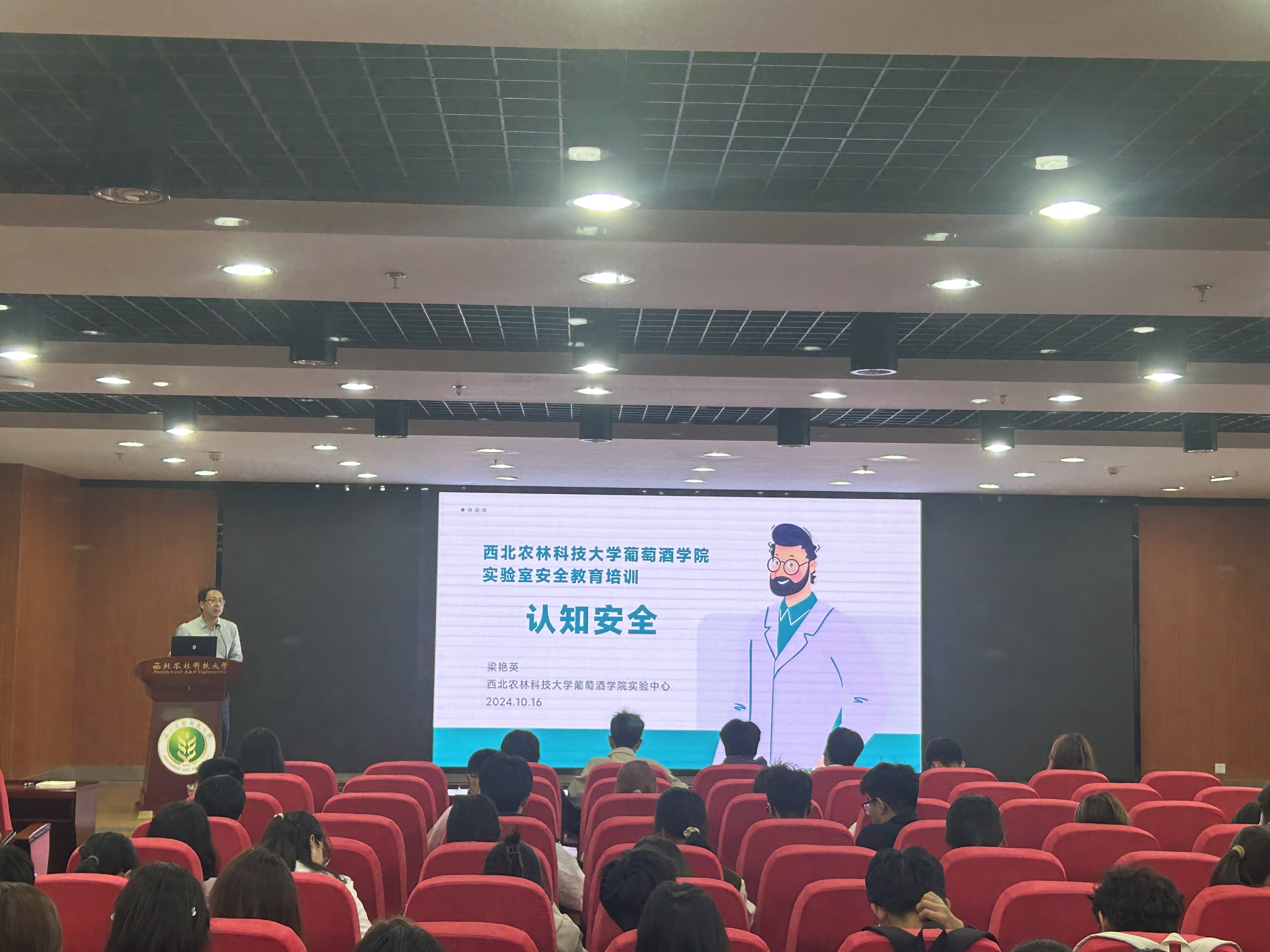 为贯彻落实《教育部关于加强高校实验室安全工作的意见》文件精神和要求,切实增强新生实验室安全意识,提高实验室安全技能及应急处理能力,10月15日下午在食品6楼报告厅,公司邀请校实验室安全督导组专家、院实验中心主任梁艳英老师为2024级新生作实验室安全教育培训讲座,公司副经理陶永胜教授主持此次活动。