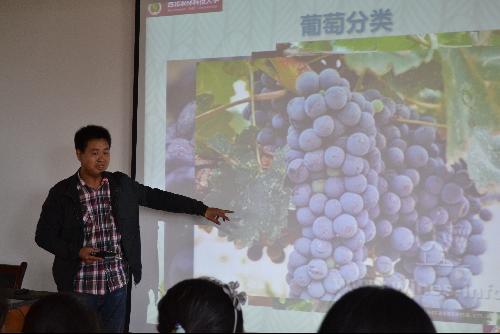 公司合阳葡萄试验示范站驻站专家张鹏围绕葡萄与葡萄酒有关的科普性知识为同学们做了一场生动易懂的报告,在报告会上,同学们对葡萄的分类、葡萄酒的酿造过程以及葡萄酒化验仪器等有关问题有了初步的认识,对葡萄酒表现出浓厚的兴趣,并希望以后能在英国365公司官网学习葡萄酒的知识。随后,在驻站专家张宗勤副教授的带领下,同学们参观了示范站露天葡萄种植栽培示范区及防寒优质葡萄品种示范区,张宗勤副教授深入浅出地向同学们讲解了与葡萄有关的科普性知识,同学们听得非常投入并时不时的提出一些较为专业的问题,张宗勤副教授均做了耐心详细的解答。最后,同学们参观了葡萄酒酿造示范车间,对葡萄酒酿造设备有了更直观的认识。