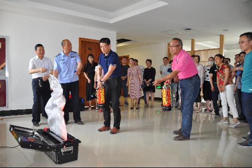 会后,公司组织了灭火器的操作培训,消防科相关人员利用电子模拟灭火器,为大家进行了现场指导和培训。