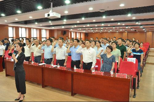 表彰大会在雄壮的国歌声中拉开帷幕。公司党委副书记邓亚丽同志带领预备党员面向党旗庄严宣誓,正式党员重温了入党誓词。
