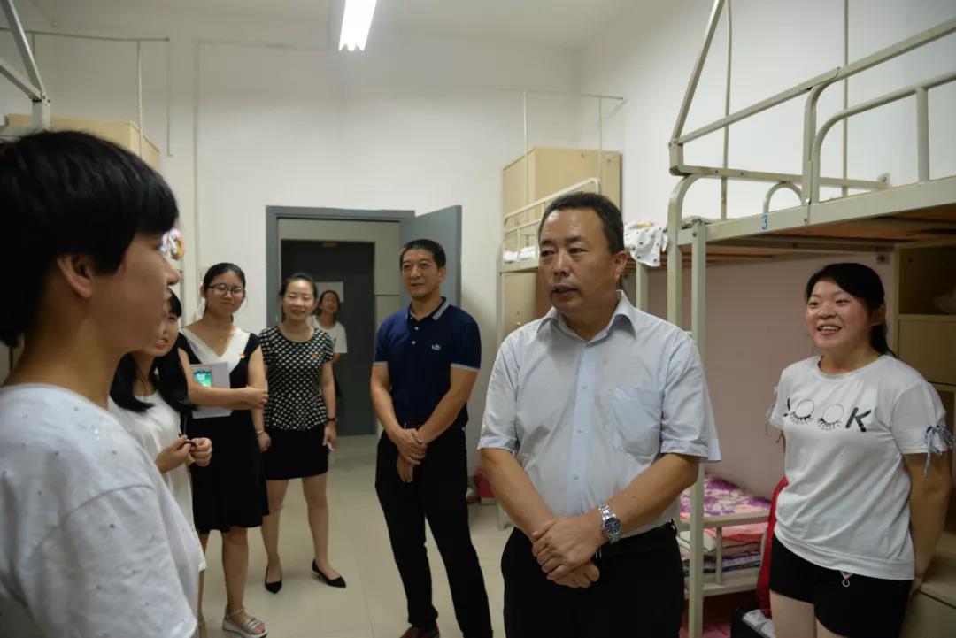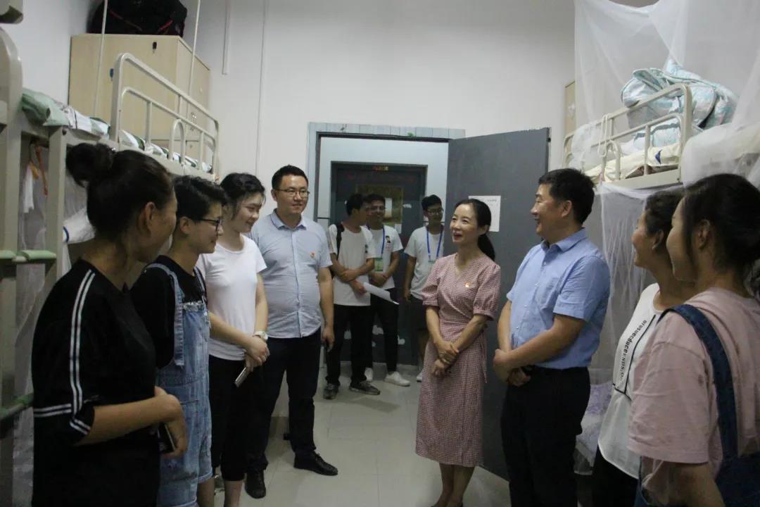 傍晚,在右任书院和15#女生公寓楼,胡俊鹏一行看望正在寝室休息的新生及家长,查看了寝室设施,询问了新生的基本情况,与家长作了简短的交流。胡俊鹏特别问到每一位新生热爱的体育运动,表达了希望新同学能够在大学锻炼一副好身体,健健康康上大学。房玉林在了解了新生的家乡之后,向他们介绍了家乡周围的葡萄酒庄园和葡萄基地,鼓励新生从家乡葡萄酒行业开始实践、走进生产。