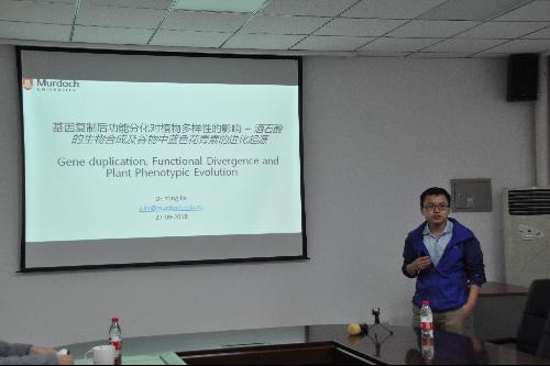 青年学者贾永博士后作了题为“Gene duplication, functional divergence and plant diversity”的报告。主要介绍了基因复制(gene duplication)和基因进化(gene evolution)等基本概念,并通过四个研究案例为大家详细讲解了植物界的基因复制和进化现象,包括:(1)tartaric acid biosynthesis in grapevine;(2)a grapevine acyltransferase responsible for most acylated anthocyanin in grape skin;(3)rtundone biosynthesis in grapevine;(4)identification of the gene controlling blue colored barley and wheat grains。