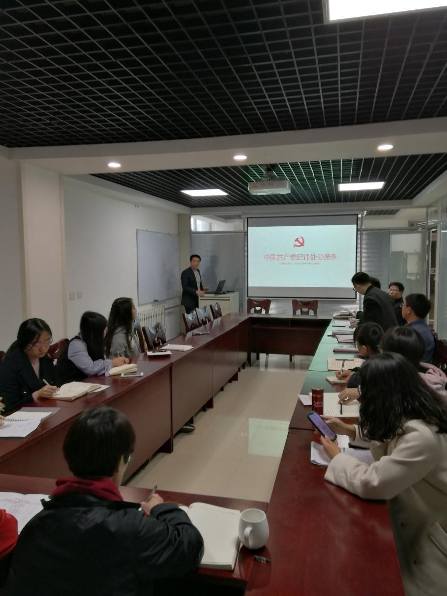 11月29日下午,在公司4层党员活动室,刘树文同志为葡萄酒学党支部全体党员讲解了《中国共产党纪律处分条例》,党课内容丰富、生动详实。