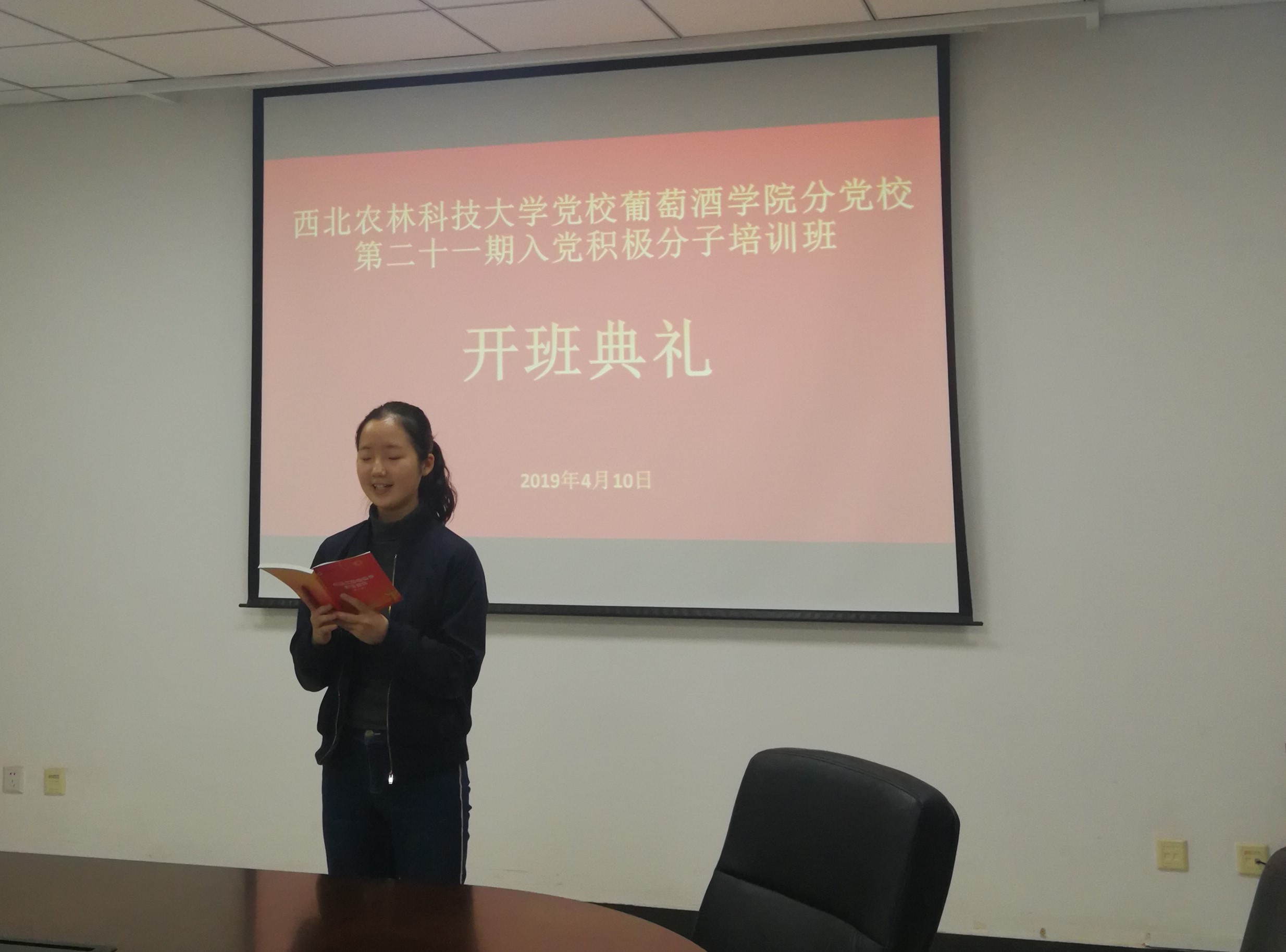 开班仪式上,赵老师带领学员学习了公司对此次培训班的安排和要求,熊思瑞同学代表全体入党积极分子表达了上好党课的信心和决心。公司党委副书记邓亚丽从三个方面对学员提出了要求:一是要珍惜机会,学用结合,用自己在党校这个熔炉里的学习所获来更好的指导实际,争做各方面都起带头作用的先锋模范。二是要端正学习态度,以最饱满的热情、最诚恳的态度、最实际的行动来高质量完成培训学习,争做一名 既有共产主义觉悟又有葡萄与葡萄酒专门知识技能的优秀老员工。三是严守学习纪律,将规矩和纪律挺在前面,树立良好的入党积极分子群体形象,确保党校学习收到实效,个人党性修养不断提升。