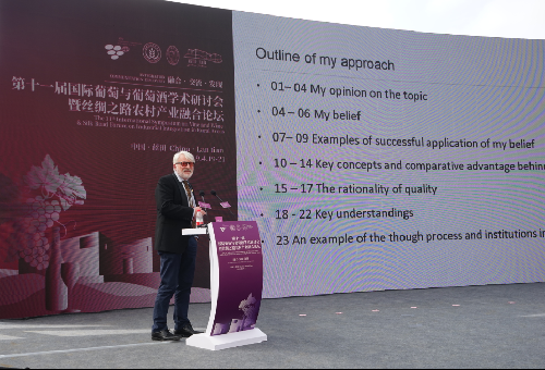 21日下午,农村产业融合论坛开幕,本次组委会领导、国内外葡萄酒专家学者、葡萄酒大师,及乡村振兴领域专家学者围绕葡萄与葡萄酒产业发展、农村产业融合和乡村振兴、文化交流等方面开展研讨。
