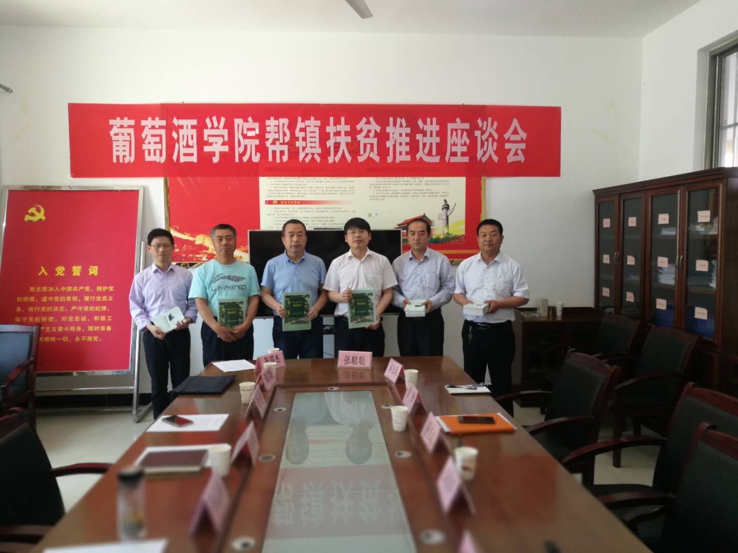 建立校地合作机制,积极推进帮镇扶贫工作。5月23日上午,胡俊鹏一行赴合阳县坊镇党委政府开展帮镇扶贫推进会。合阳县挂职副县长王俊华、坊镇党委书记董亚斌、镇长雷博、科技副镇长张聪聪、乾落村第一书记韩锁昌等参加会议。会上,胡俊鹏详细介绍了党建结对帮扶、产业帮扶、科技镇长团工作站等主要内容,并结合公司在坊镇帮镇扶贫的工作形势以及工作重点做了深入分析,并提出了扶贫工作计划,即以三个示范基地为核心,辐射带动周围贫困户,紧抓示范园区建设、技术培训、葡萄深加工以及思想观念转变等重点工作,依托合阳葡萄试验示范站,充分发挥专家组的作用,帮助坊镇实现精准脱贫。会后,公司向合阳县坊镇赠送了葡萄、花椒生产管理的科技资料。