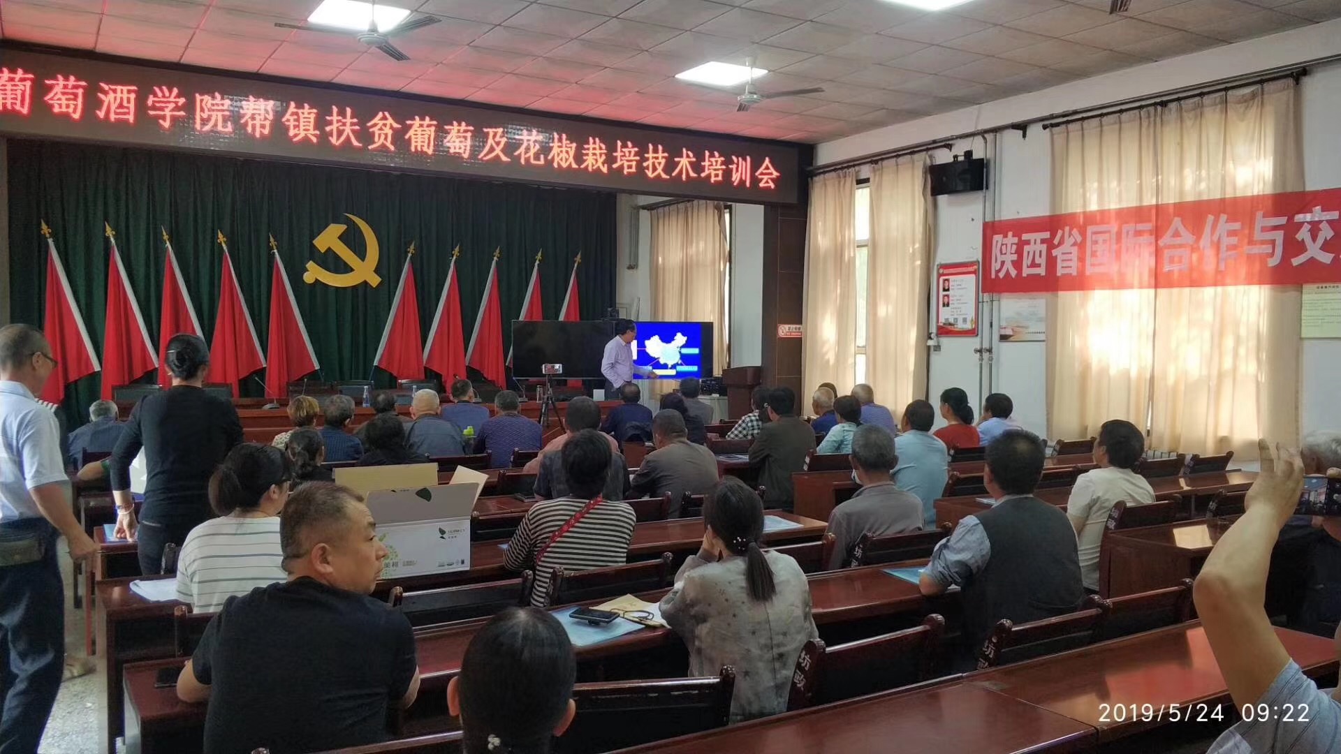 助力地方产业发展,开展葡萄及花椒技术培训。5月24日,公司专家团在坊镇机关会议室组织召开了葡萄及花椒栽培技术集中培训会,坊镇葡萄和花椒种植户80余人参加了此次培训会。专家教授分别作葡萄花果期管理技术、花椒田间管理、葡萄酒酿造三个专题培训。解决了葡萄、花椒花果期管理存在的问题,通过提升果农田间管理的规范化、科学化水平实现提质增效,通过引导葡萄果农通过酿酒延伸农产品产业链,提升农产品附加值实现增收目的。本次技术培训会发放《冷棚红提葡萄栽培技术手册》260本,发放《葡萄栽培技术规程》150余本,切实帮助了农户,为坊镇脱贫攻坚和乡村振兴发挥了作用。