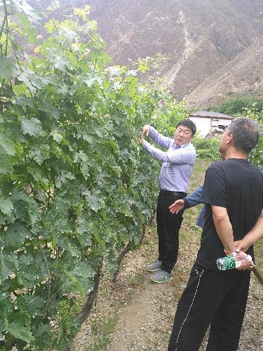 房玉林一行考察了香格里拉酒业股份有限公司的酿造车间、酒窖、葡萄园等,对葡萄园管理方式、水肥管理、病虫害防治和品种结构等提出建设性意见,并肯定了香格里拉酒业葡萄园简约化修剪的管理模式。同时与香格里拉酒业股份有限公司副总经理崔可栩、曹建宏等负责人洽谈项目合作,助力当地葡萄产业的科技扶贫。