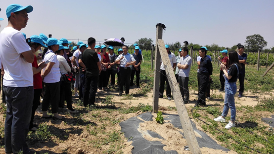 2019年6月13日,在合阳县农业广播电视公司的协调下,延安市农广校组织安塞县新型职业农民50余人到合阳葡萄试验站实训。张宗勤副教授为学员们介绍了试验站的4项基本功能,讲解了葡萄栽培技术,就果农最关心的疏花疏果与保花保果、整形修剪与夏芽副梢的处理等问题与果农互动,并现场示范。许多果农与专家互相添加了微信,表示了进一步咨询学习的意愿。