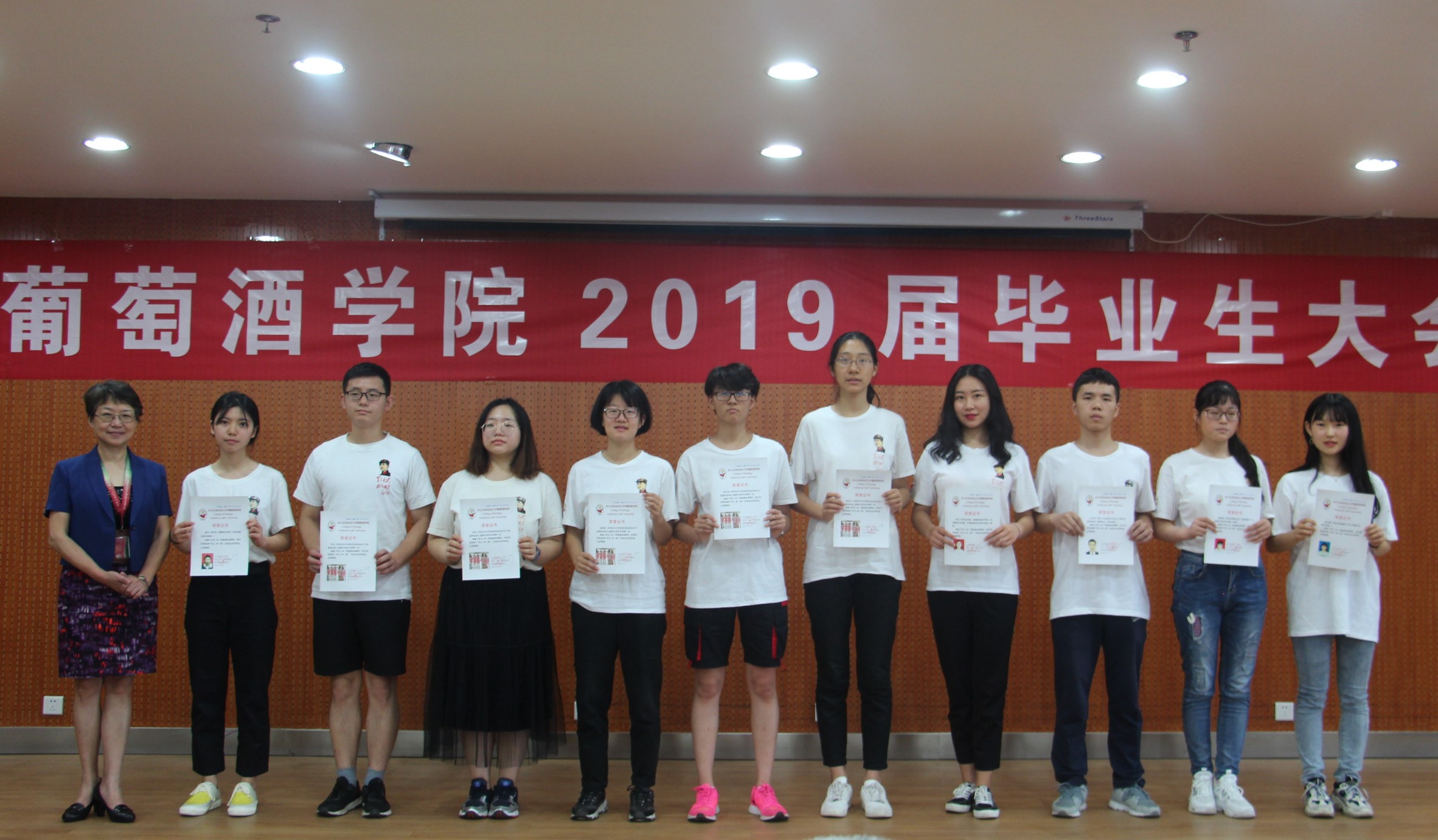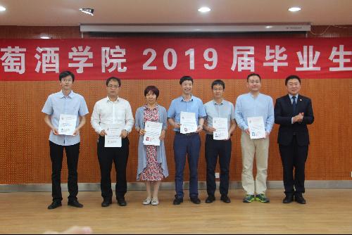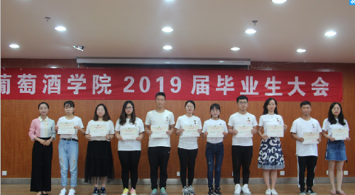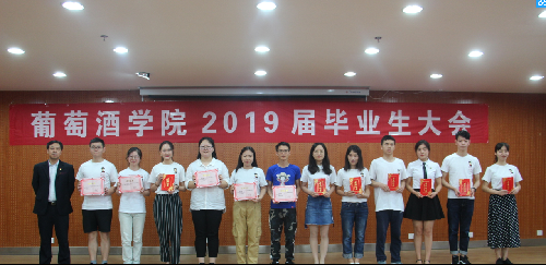 随后,毕业研究生代表鞠延仑、毕业本科生代表鲍琪分别表达了对师长的孺慕之情与对公司的教诲之恩,教师代表孟江飞副教授为全体毕业生送上了拳拳叮嘱和殷殷希冀。 最后,大会对先进个人进行了表彰。刘树文副经理为2019届兼职员工联络员颁发聘书,王华教授为获奖员工颁发华王NO.1奖励金证书,邓亚丽副书记为获奖员工颁发萨意·卓越葡酒人培育基金证书,LAFFORT公司陈云海先生为获奖员工颁发LAFFORT奖学金证书, 陶永胜教授为公司2019届优秀毕业生、志愿服务边疆建设优秀毕业生颁发证书,党委书记胡俊鹏为全国高校“百名研究生党员标兵”、校级“十佳毕业生”、校级“优秀毕业生”颁发证书,房玉林经理为优秀本科毕业论文指导教师颁发经理基金奖励证书及奖金,李华教授为获奖员工颁发李华科研创新奖学金证书证书及奖金。