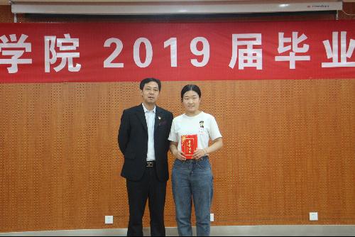 胡俊鹏书记为校级“十佳毕业生”鲍琪颁发证书