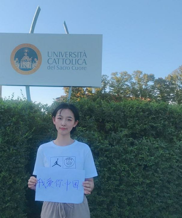 远在意大利访学的员工刘迪也通过观看网络直播表达对祖国的热恋和思念,她谈到:远游海外更思祖国月光,在意大利卡托利卡大学访学的生活是充实忙碌的,但更令我们海外游子自豪的是,在与中国相隔万里以外的欧洲大陆,我的祖国正被更多来自不同国家和地区的人们尊重,更多的人看到中国如今的繁荣昌盛,从世界时尚之都米兰著名文艺复兴百货商店随处可见的用中文书写庆祝祖国70周年庆的支付宝折扣海报,到地铁上、火车站的可选择的中文购票语言,再到街边随处可见的华为手机店,再到同学、邻居,提起中国和意大利的一带一路合作时,对中国竖起的大拇指。其实祖国一直都在每一位海外学子的身边,正值新中国成立70周年,作为海外游子的我,必将怀抱着这份民族自豪感,时时刻刻为祖国荣誉而战,努力学习,为祖国的繁荣昌盛增添属于自己的力量。