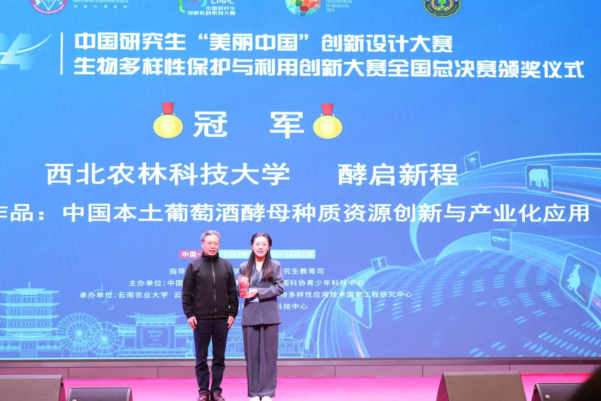 赛后,团队负责人杨涵钰同学表示:“本次大赛聚焦青年学子在生物多样性保护领域的科技创新、青年成长、社会服务、文化传承和公益宣传,是生物多样性保护与利用领域研究生学术、创新交流的一次盛会。多年来,由于我国葡萄酒酵母长期以来存在的‘卡脖子’技术隐患与产业风险,我们团队在刘延琳教授的指导下对本土酵母资源进行收集、挖掘、鉴定、优选,为我国葡萄酒产业的‘微生物种业’安全提供了技术保障。未来,我们将持续钻研核心科技,打造葡萄酒中国“芯”,为“中国葡萄酒,当惊世界殊”目标贡献青春力量。”
