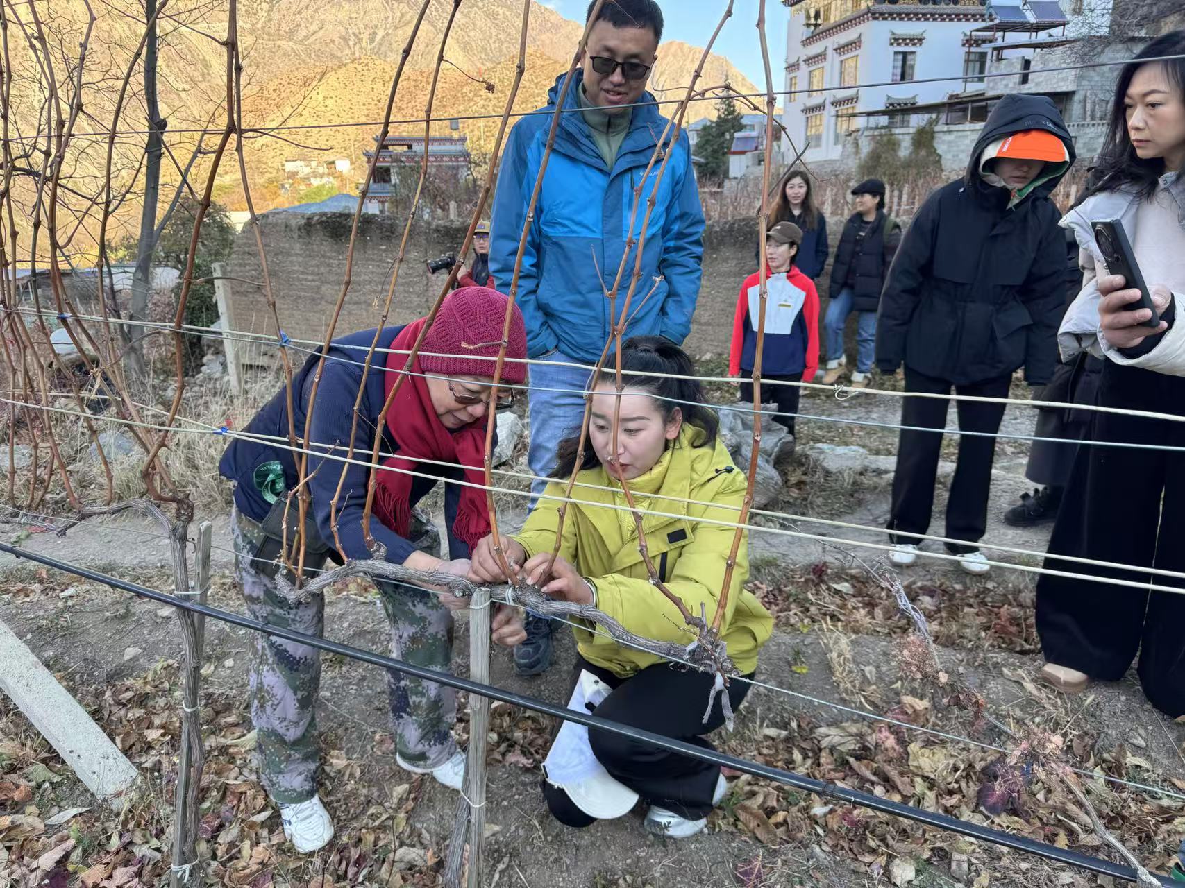 专家组一行先后深入德钦县红坡村、日咀村、阿东村、斯农村等明星葡萄园村庄,查看了葡萄枝条成熟度、水肥管理、病虫害防治、树形矫正等葡萄园管理工作,并就葡萄园冬季灌水、枝条修剪等技术对酒庄种植管理人员和果农进行了现场指导;专家组还深入茨中酒庄、扎西酒庄、敖云酒庄和香格里拉酒业公司酿造车间,认真品鉴了不同酒样,提出了宝贵意见。