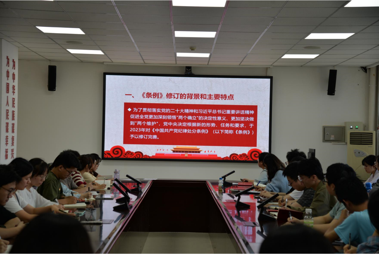 张洁指出,纪律是成长的基石、是发展的保障,更是修身的镜子。新修订条例的实施是贯彻落实党的二十大精神和习近平总书记重要讲话精神、全面加强从严治党的时代要求,也是坚持问题导向、用严的纪律管党治党的现实需要。全体党员同志从自身做起,尤其作为青年员工党员,在遵守校规校纪的同时,更要将党规党纪铭记于心,把规矩意识和纪律意识践行于日常的学习、工作和生活中,扣好人生的第一粒扣子,始终做到忠诚、干净、担当,在加快建设社会主义现代化强国的征程中挺膺担当,在实现中华民族伟大复兴的道路上贡献西农学子的智慧和力量。